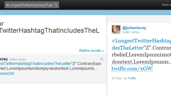 isn't the record for "longest hashtag tweet without using Y"? cause that's what the tweet says.