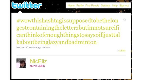 isn't the record for "longest hashtag tweet without using Y"? cause that's what the tweet says.