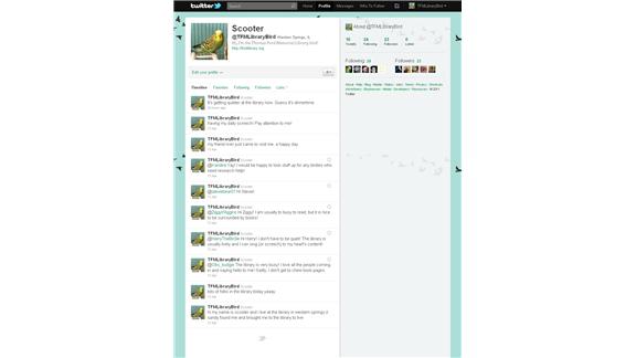 Scooter, the Thomas Ford Memorial Library bird, sent 10 tweets in one day.