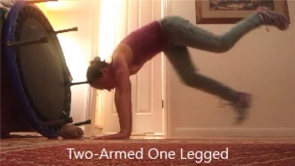 Alicia Weber performed 121 one-legged leaping mountain climber exercises in three minutes.