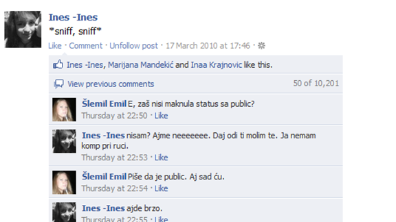 Scaron;lemil Emil and her friends commented 10,201 times on a Facebook status update.