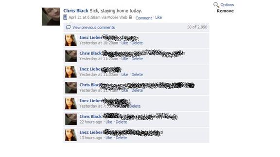 Chris Black and Victoria Inez Lieber comment back and forth 2990 times on a singleFacebookstatus update, a new world record. No one else commented but the two of them.