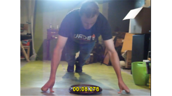 Darryl Learie performed a two-thumb plank exercisewithout using his other eight fingers. He remained balanced in position for 28.11 seconds.
