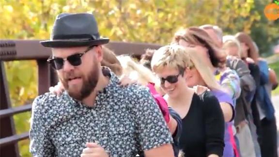 Michael John Heagerty, of Played Out! Syracuse, led 25 people in forming an urban conga line parallel to a creek.