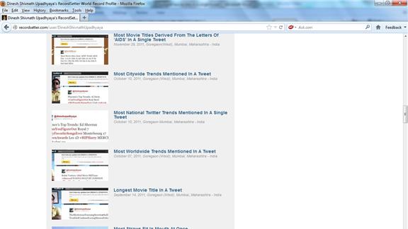 Dinesh Shivnath Upadhyaya currently has 28 Twitter-related records on RecordSetter.