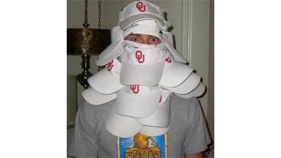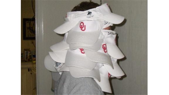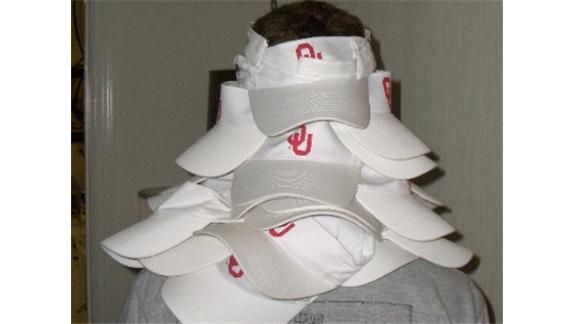 Bryan Porter wore 25 visors at once, a new world record. All 25 were University of Oklahoma Sooners visors.