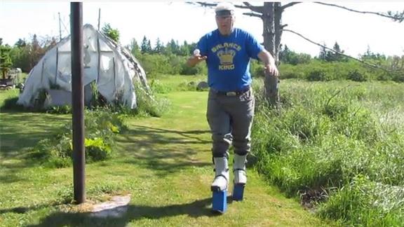Fastest Time To Walk 100 Yards Wearing 10-Inch Stilts On Feet While Balancing An Egg On Back Of Hand