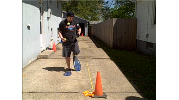 Fastest Time To Walk 100 Yards Wearing Swim Fins While Bouncing A Golf Ball On A Rubber Mallet And Juggling Two Tennis Balls Simultaneously