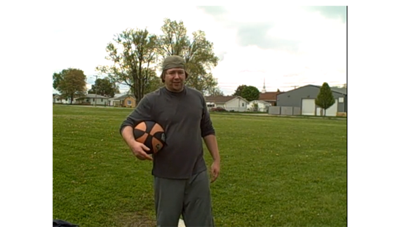 Brian Pankey walked 100 yards while wearing swim fins and circling a basketball around his body in one minute and 19.81 seconds.