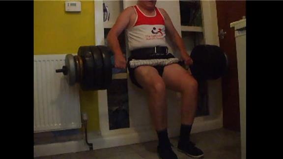 William Cannon performed a wall sit for 8.54 seconds while carrying a 200-pound barbell.
