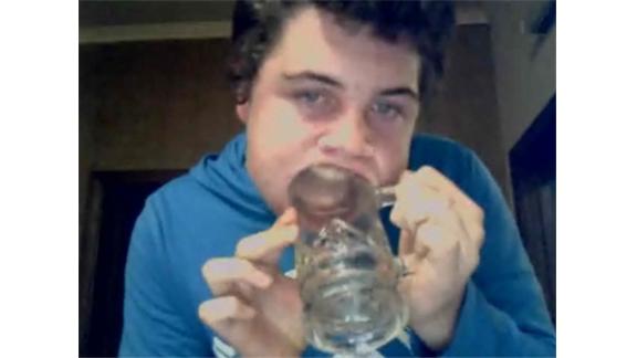 After trying it with one of my glasses at 8cm diameter, I have to say amazing job, I can't even get that in my mouth - can't get my jaw open enough. I think this guy needs to go for the record: http://today.msnbc.msn.com/id/39895473 and it reminds me of a photo I've always remembered in an old Guinness book: http://static.funnyjunk.com/pictures/0415.jpg