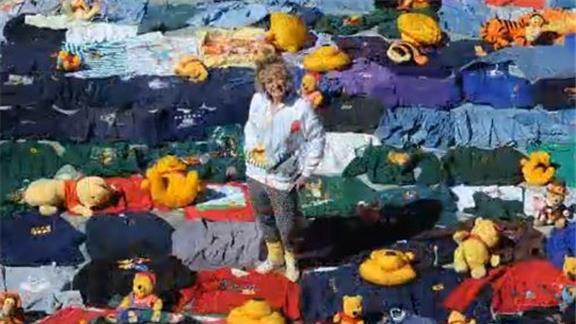 Deb H. laid out 548 Winnie the Pooh and Friends shirts and jackets in her backyard.