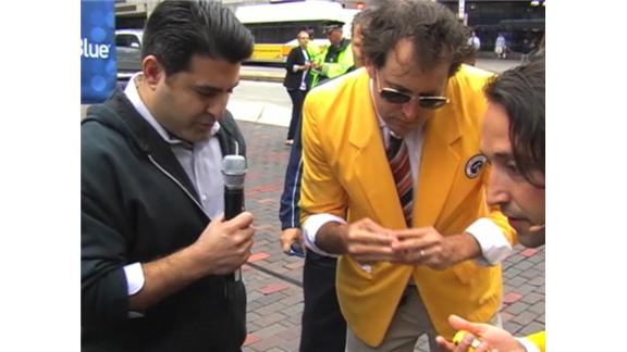 Todd Derderian rhymed 23 words with the word “blue” in 30 seconds.