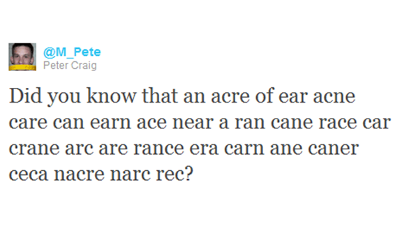 Most Words Spelled Using The Letters In "CANCER" In One Tweet