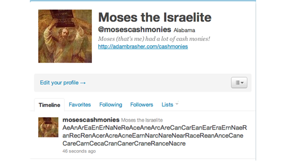 Adam Brasher spelled 42 words using the letters in “Cancer” in one tweet.