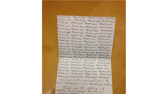 Megan Murphy wrote "Thank you" 91 times in a single thank you note.