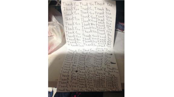 Ali P. wrote "Thank you" 93 times in a single thank you note.