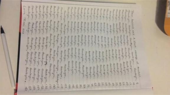 Rishi H. wrote "Thank you" 161 times in a single thank you note.
