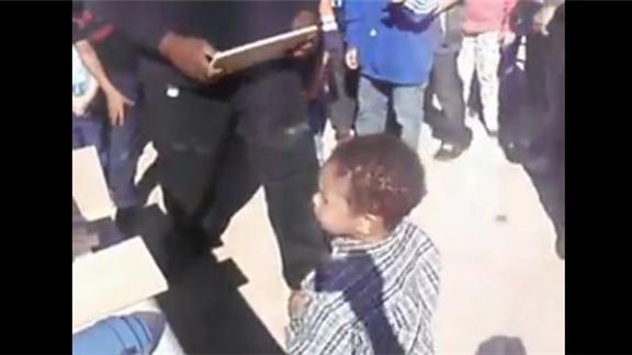 Luke, Kevin Taylor's son, broke a piece of wood using his bare hand. He is only two years old.