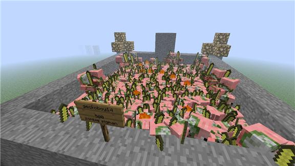 Jake spawned 500 zombie pigmen in Minecraft.